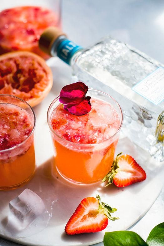 You’re going to love this Strawberry Ginger Paloma cocktail recipe! It’s a great way to bring the flavors of spring into your home. Plus, it’s relatively easy to make—all you need is good quality tequila, like Olmeca Altos, and fresh ingredients.