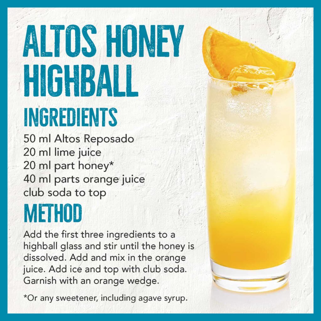 You can’t go wrong with Olmeca Altos, a premium tequila that’s perfect for elevating your Honey Highball.